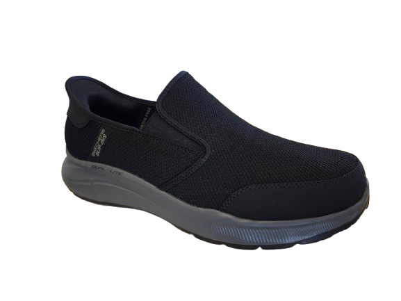 Simply step in and go wearing Skechers Hands Free Slip-ins® Relaxed Fit®: Equalizer 5.0 - Drayze. Designed with our Heel Pillow®, this laceless slip-on features a yardage mesh upper with synthetic trim and a cushioned Skechers Air-Cooled Memory Foam® comfort insole.