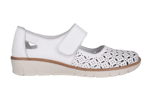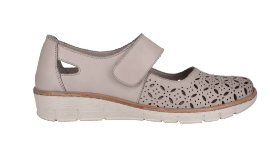The CP395-22 is a light and breezy summer shoe designed for all-day comfort and effortless style. Featuring soft punched leather uppers for breathability and a touch of detail, it’s perfect for warm-weather wear. The secure Velcro strap and supportive closed back provide a snug, comfortable fit, while the small wedge adds just the right amount of lift. A flexible sole ensures ease of movement with every step, making this shoe ideal for casual outings or long days on your feet.