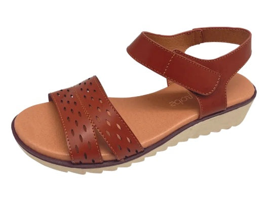 Bare Traps Summer Sandal JIGGLE is a part of their EURO Sandal Range. This simple and versitile Y-back style is made from soft faux-leather material with a lasercut designed front strap. The sandal features soft Natural Lining and 10mm of Padding to the sock bed for all day comfort. It's made on a 2 colour Flexible Rubber Wedge. The velcro adjustable back strap allows for easy adjustment. A Perfect recipe for ALL-DAY Wear. WOW!