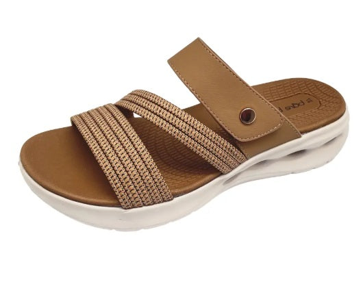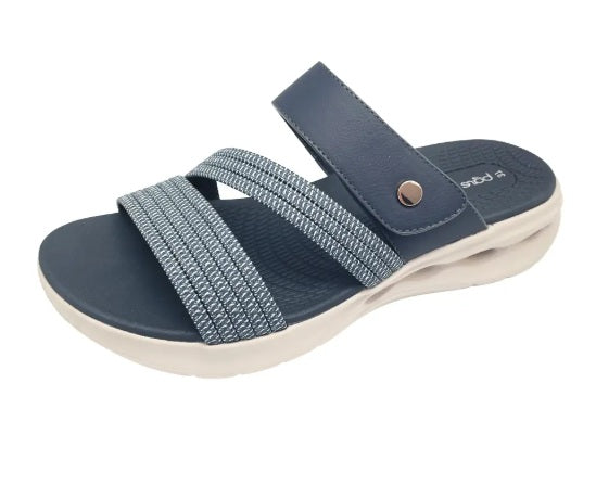 Put your feet first with the Freedom Sports style PLANET. These Summer sandals are crafted from soft nubuck-like material and straps of multi coloured elastic for snug fit. The top strap is velcroed for additional fit. The wedge is super sturdy and features a full foot-form inlay sock. Wear all day - your feet will be in heaven!