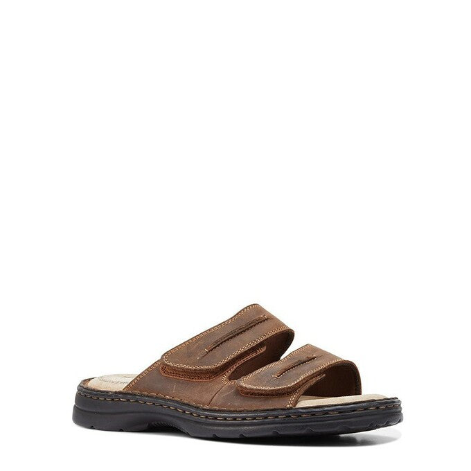 Slide on into a pair of these beauties and be exposed to the true meaning of comfort. Featuring a memory foam sole that feels like your walking on clouds and topped with classic chestnut brown leather that gives the sandal a timeless feel. Self-fastening, adjustable upper straps and memory footbed for ultimate comfort. Built in arch support, Airport friendly. A generous EEE extra wide fit.